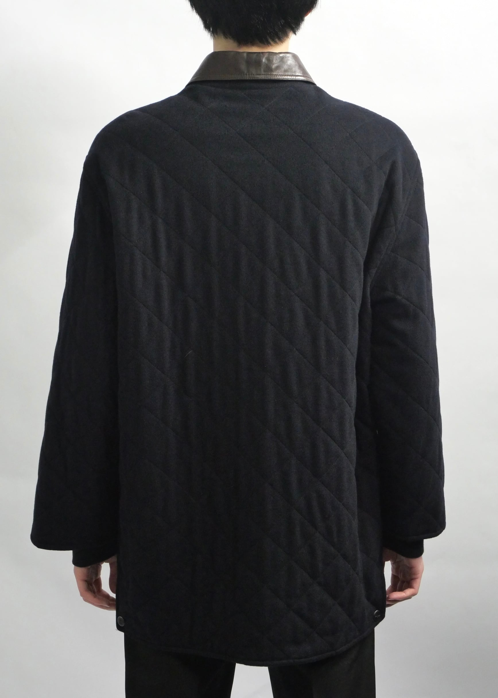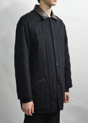 1990s-2000s "Salvatore Ferragamo" leather collar cashmere mixed quilting coat