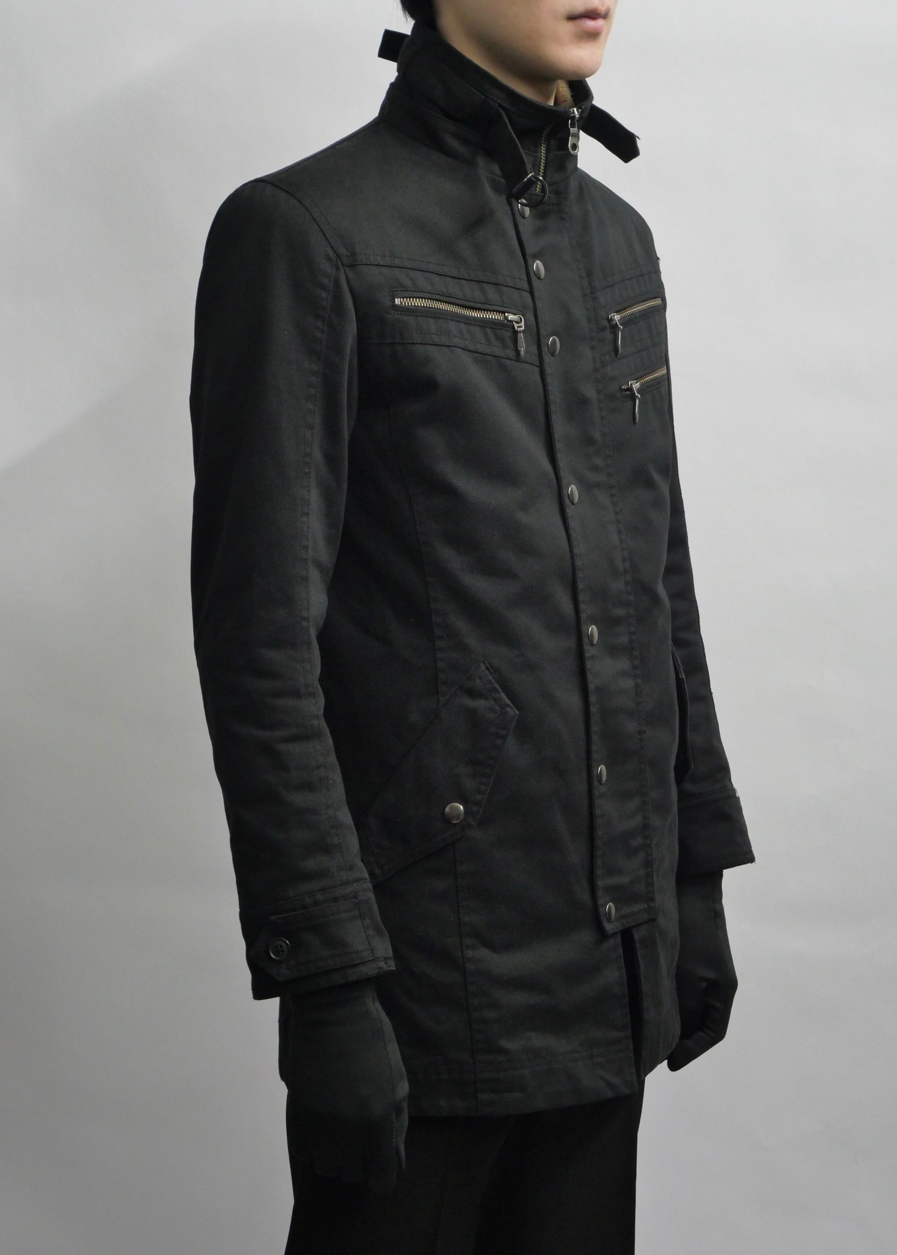 boa collar multi zip middle coat