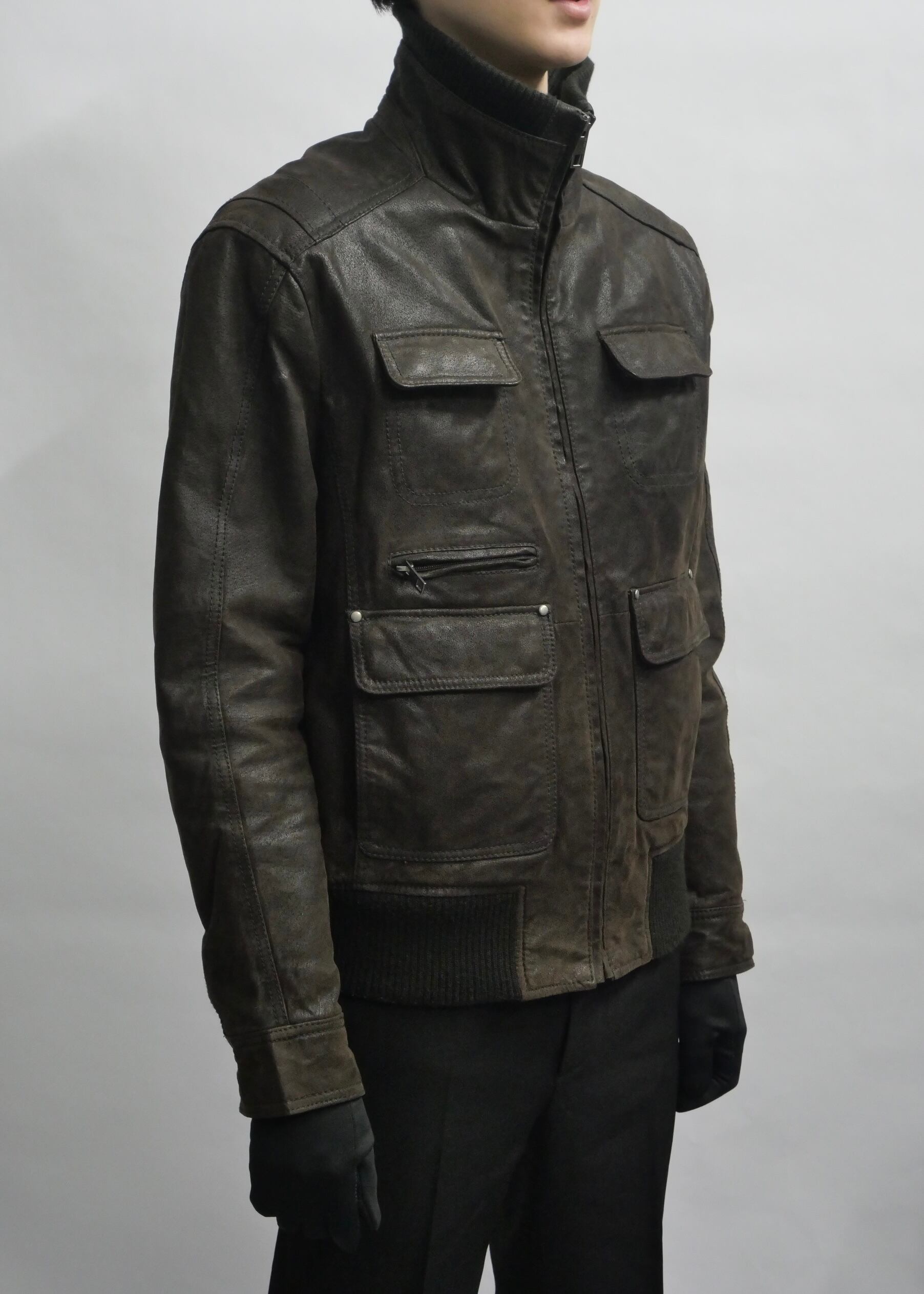 multi pocket pig leather jacket