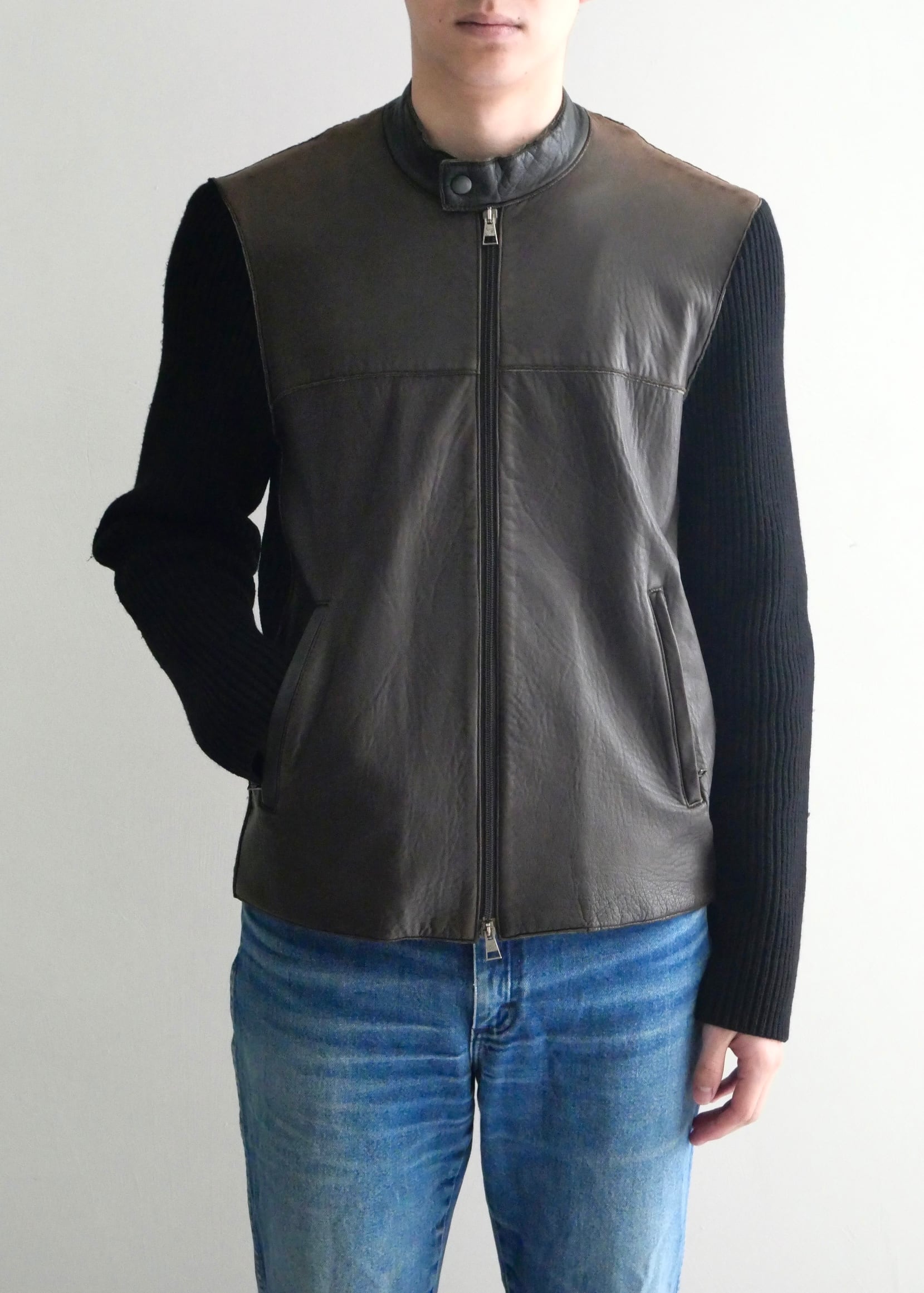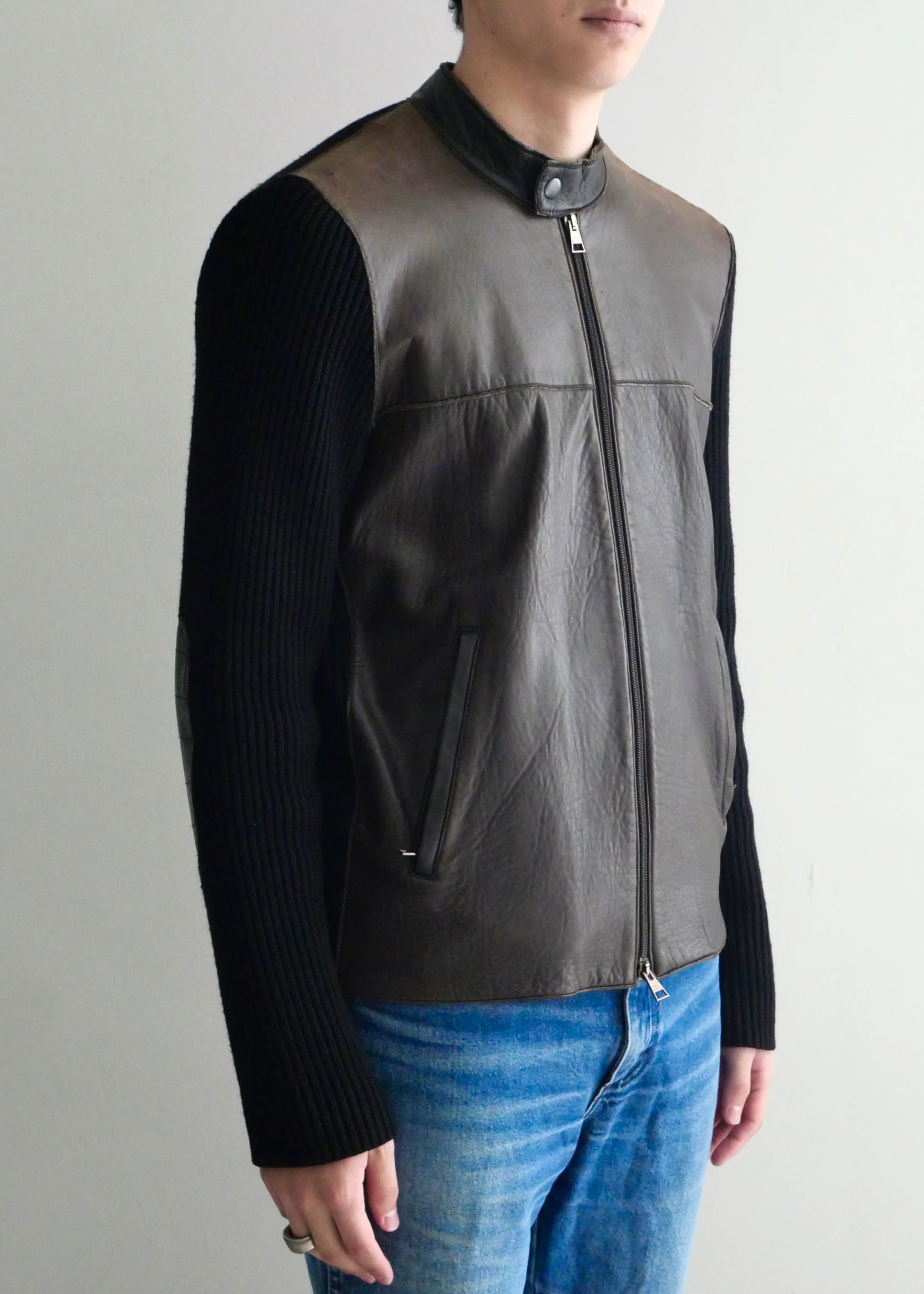 "NEIL BARETT" leather switching knit jacket