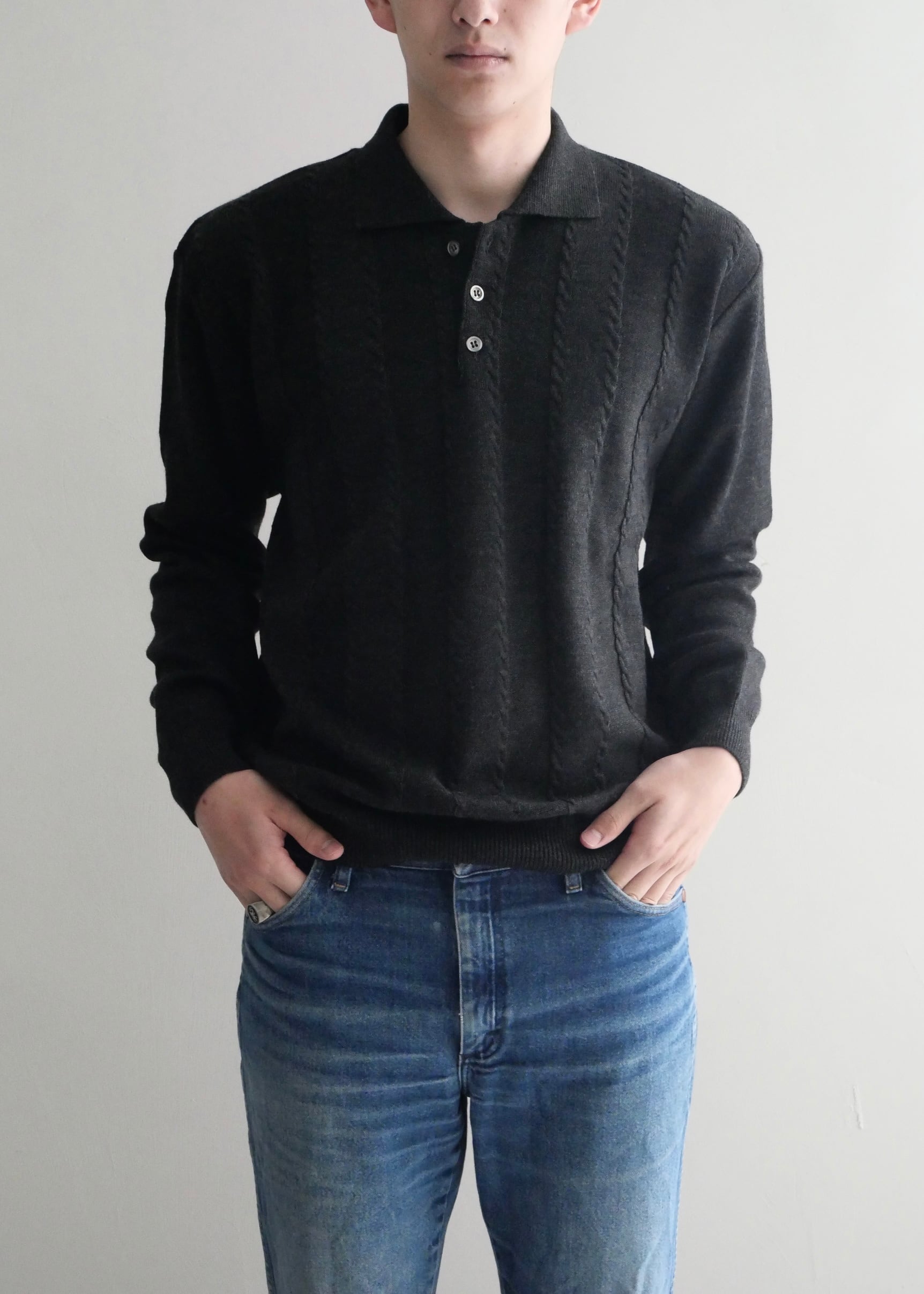 wool cable polo knit