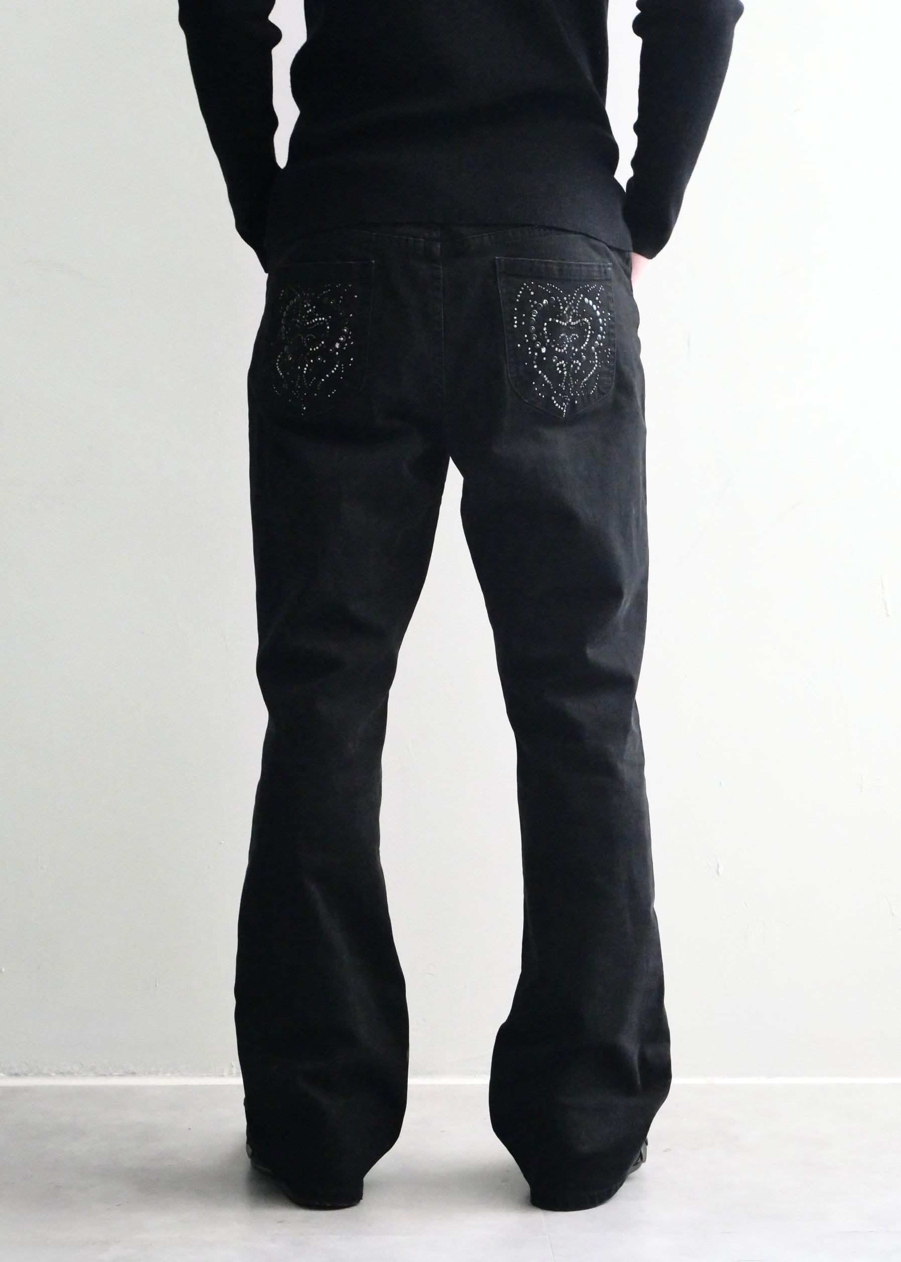 eyelet wide flare denim